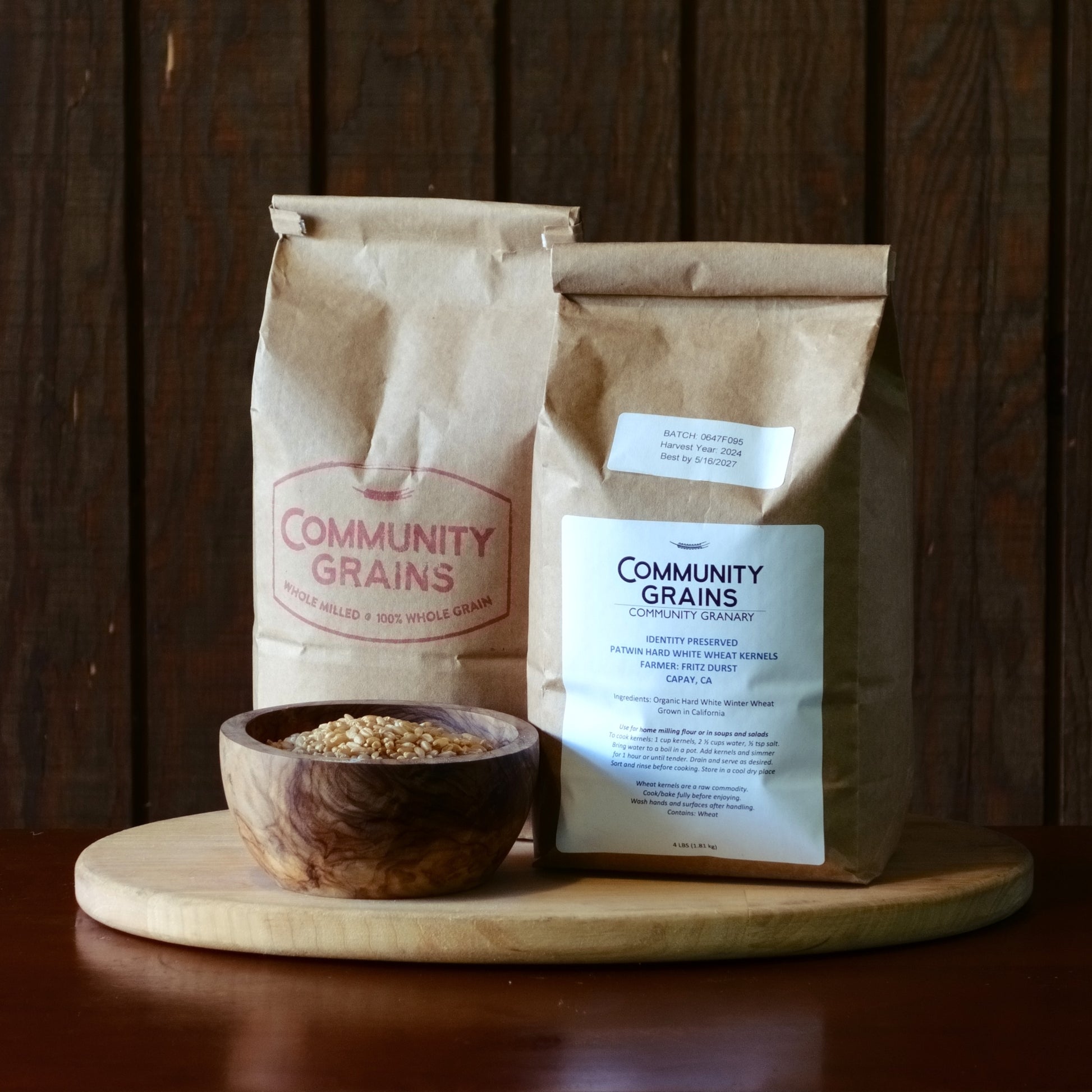 Patwin is an exceptional wheat variety developed by UC Davis that is particularly well-adapted to our region. Though this variety has slightly lower protein, the quality of the soil where it is grown gives it sturdy rising power and has excellent water absorption, making for beautiful, aromatic, loaves of bread. Bay Area artisanal bakers blend our Patwin and Summit flours for flavorful and nutritious 100% whole grain goods. Use whole kernels (also known as wheat "berries") for home milling flour or in soups and salads.